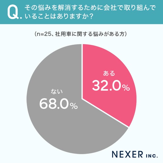 ■32%が、社用車に関する悩みを解消するために会社で取り組んでいることが「ある」
