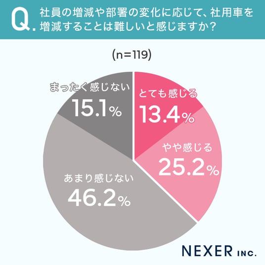 次に社員の増減や部署の変化に応じて、社用車を増減することは難しいと感じるかを聞いてみました。