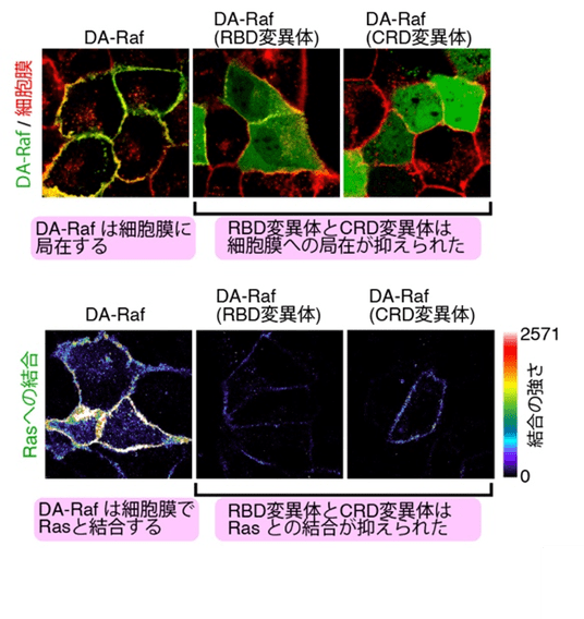 図2 DA-Rafの細胞膜への結合はRasとの結合効率に関わる