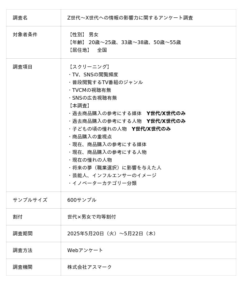 そこで今回は、「各世代(Z世代、Y世代、X世代)によって、影響を受ける媒体や人物が異なるのか」、「Y世代、X世代が、現在のZ世代と同年代だった当時と、現在で影響を受ける媒体や人物が異なるのか」について調査しました。