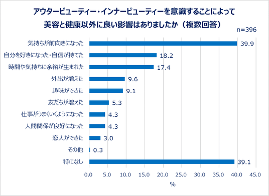 アウタービューティー・インナービューティーを意識することによって美容と健康以外に良い影響はありましたか(複数回答)