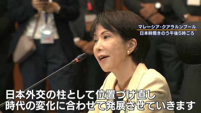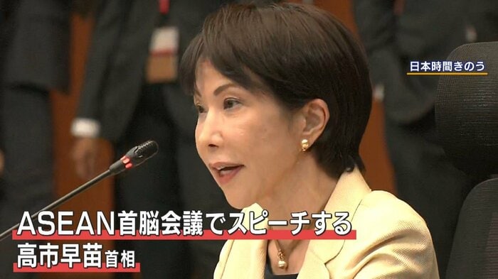 総理大臣就任後、初の外国訪問となるASEAN・東南アジア諸国連合との首脳会議でスピーチを行った高市早苗首相。