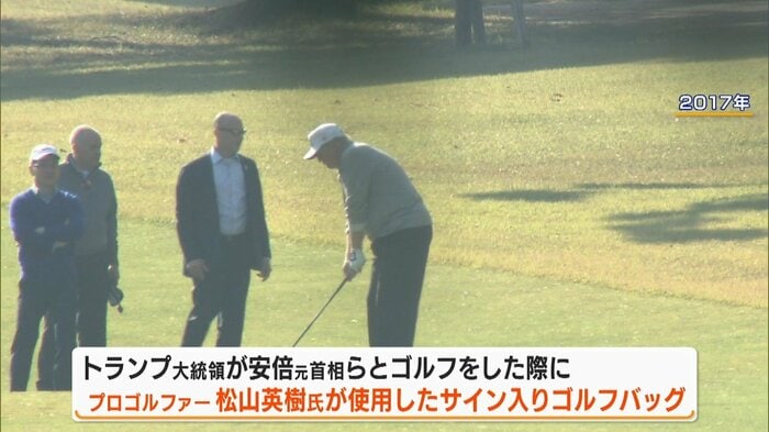 トランプ氏が安倍元総理らとゴルフをした時に、プロゴルファーの松山英樹氏が使用した、サイン入りゴルフバッグや、被災地、石川県・金沢市の金箔を使ったゴルフボールのプレセントを検討しているといいます。