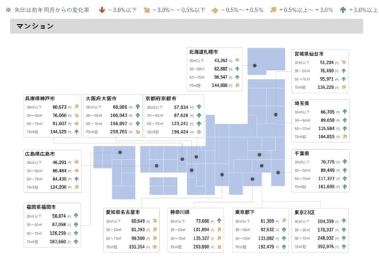 ●マンションは、ファミリー向きが全13エリアで前年同月を上回る。中でも、東京23区・東京都下・千葉県・大阪市・広島市の5エリアで2015年1月以降最高値を更新。シングル向きでは東京23区が16カ月連続、大阪市が14カ月連続で最高値を更新し、東京23区は3カ月連続で全面積帯において最高値となった。