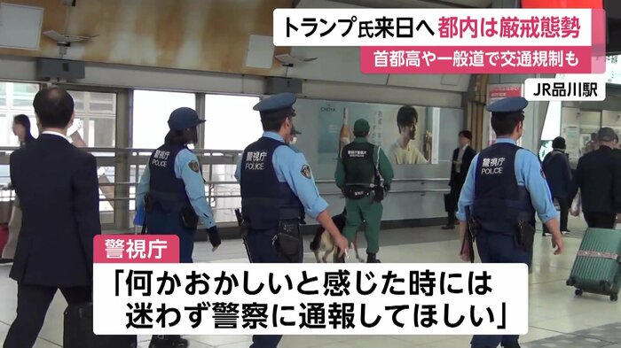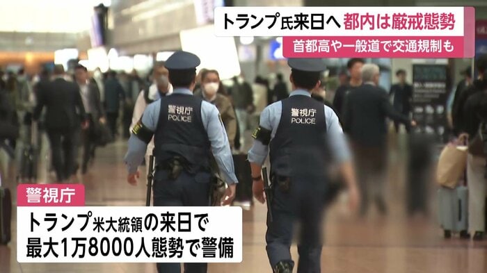 警視庁は、トランプ大統領の来日に合わせて特別警備本部を設置。最大で1万8000人態勢で、訪問先や主要な駅などの警備を強化する。