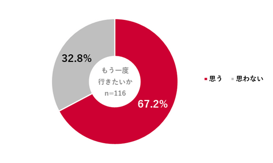 また、再訪意欲を伺ったところ、「もう一度行きたい」が67.2%となった。