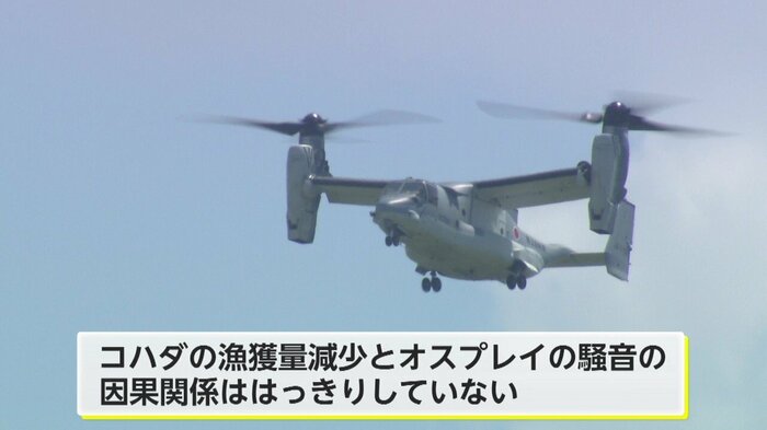 オスプレイの飛行訓練開始からまだ日が浅いため、コハダの漁獲量とオスプレイの騒音の因果関係はまだはっきりしていないが、漁業者からは不安の声が聞かれる。