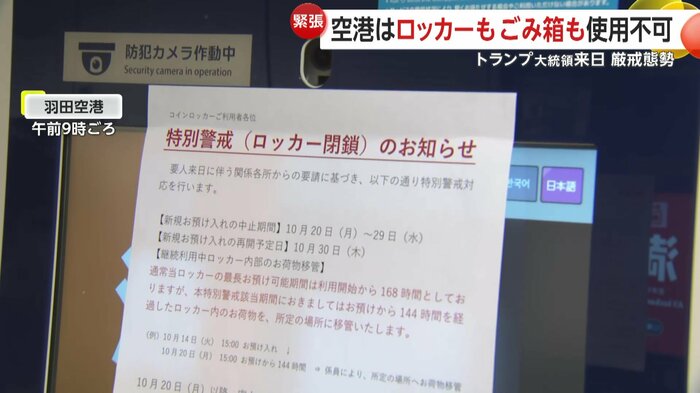 羽田空港では警備強化に伴い、コインロッカーの預け入れが一時閉鎖になっている。