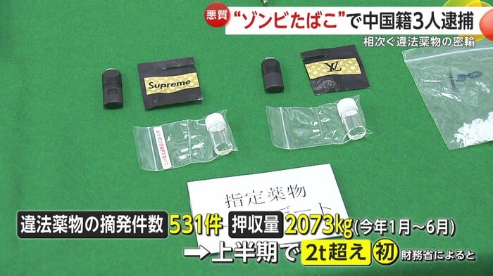 財務省によると、全国の税関における2025年1月から6月までの違法薬物の摘発件数は531件、押収量は2073kgで、押収量が上半期だけで2tを超えるのは初めてで、状況は極めて深刻と言える。