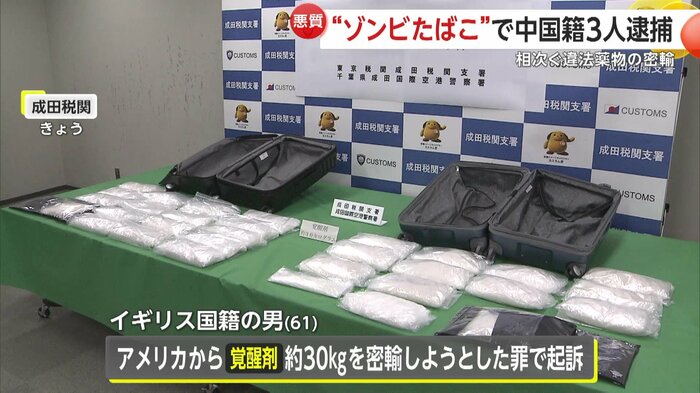 こうしたなか、27日にはアメリカから覚醒剤約30kgを密輸しようとしたイギリス国籍の61歳の男が起訴された。