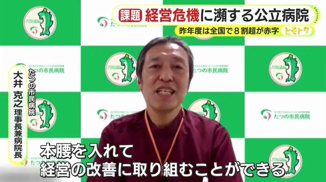 また、大井理事長 兼 病院長も「たつの市民病院より大きな規模の医師が100人や150人いるような病院で理事長や病院長を引き受けても、おそらく黒字化はできない。診療報酬が安すぎる」と断言した。