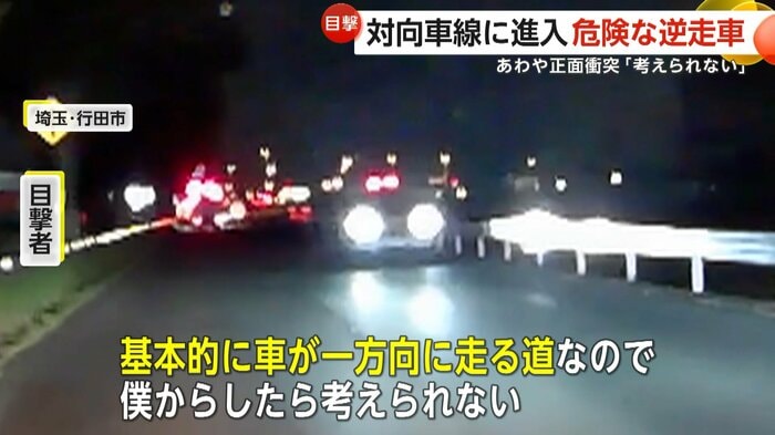 「なぜそんなところに?」と思わずにはいられない逆走は、埼玉・行田市で23日午後9時半頃にも起きていた。