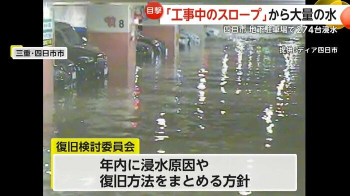 三重・四日市市で9月12日、記録的豪雨により地下駐車場で274台の車が浸水した。防犯カメラ映像には、水が流れ込み、わずか10分で駐車場全体が水没する様子が映っていた。
