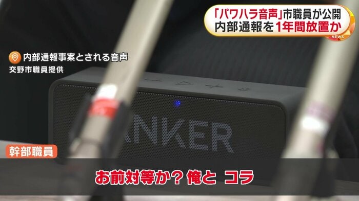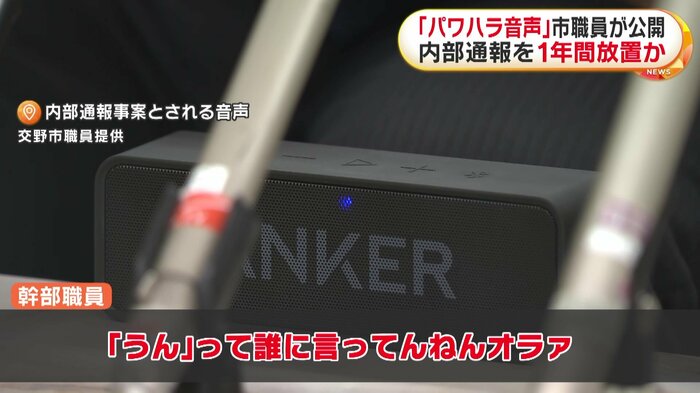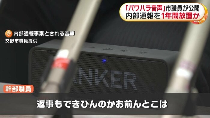27日午後4時頃、大阪府交野市役所の職員などが会見を開き、市の幹部職員から受けたとする、「パワハラの音声」を公開した。