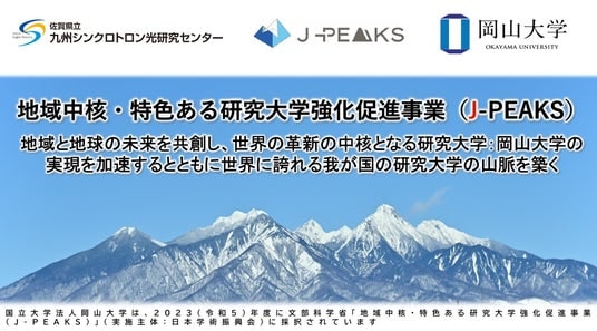 - 岡山大学 文部科学省「地域中核・特色ある研究大学強化促進事業(J-PEAKS)」に採択~地域と地球の未来を共創し、世界の革新の中核となる研究大学:岡山大学の実現を加速とともに世界に誇れる我が国の研究大学の山脈を築く~