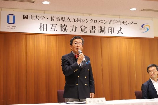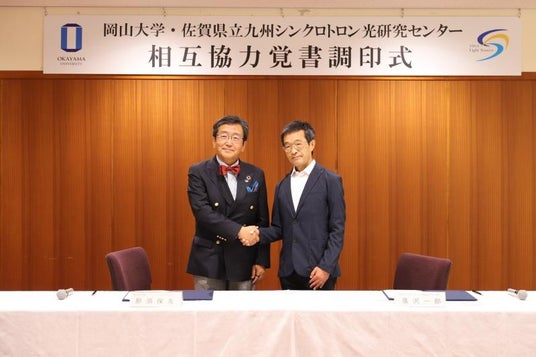 国立大学法人岡山大学(本部:岡山市北区、学長:那須保友)は、2025年は8月1日、公益財団法人佐賀県産業振興機構九州シンクロトロン光研究センター(SAGA-LS)と施設の相互利用をはじめとする連携を推進するための相互協力に関する覚書を、本学津島キャンパスの本部棟で締結しました。