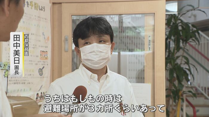 ハザードマップで、浸水想定エリア内にある西都保育園の田中美日園長は、「もちろん、ハザードマップは知っている」とした上で、「もしもの時に備えた園児の避難場所が3カ所くらいある」と話す。