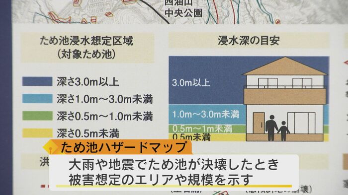 「地震の時は、この溜め池の水が全部出ていくと、浸水深で1.5m超えるぐらいの想定は、七隈川の流域、かなり下流の方まで広く被害が広がるので、その時にどうするかを頭に入れておく必要はある」と被害の可能性について注意を促す。