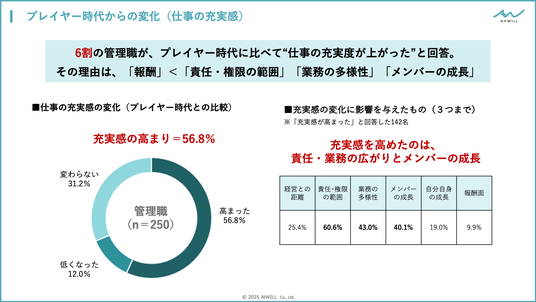 約6割はプレイヤー時代よりも充実。報酬以上に責任や・業務の広がり、メンバーの成長がやりがいに。
