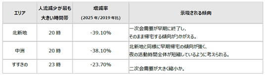 ~主要歓楽街の人流データ分析から、深夜人流が最大39%減、特にビジネス層の「24時以降の離脱」が顕著に~