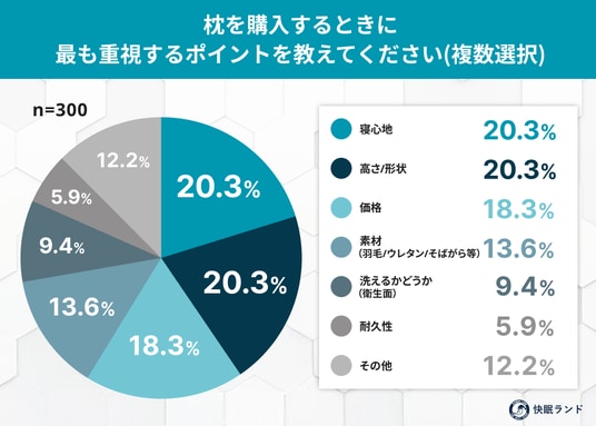 - 調査名:枕の価格と睡眠満足度に関する意識調査- 調査対象:全国の20~70代男女300名
