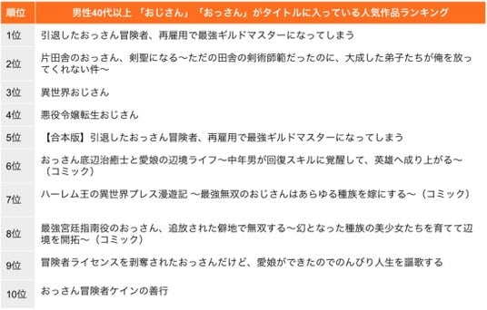 ■タイトルに「おじさん」「おっさん」が入っている人気作品ランキング、TOP10は全て「異世界」関連マンガ!