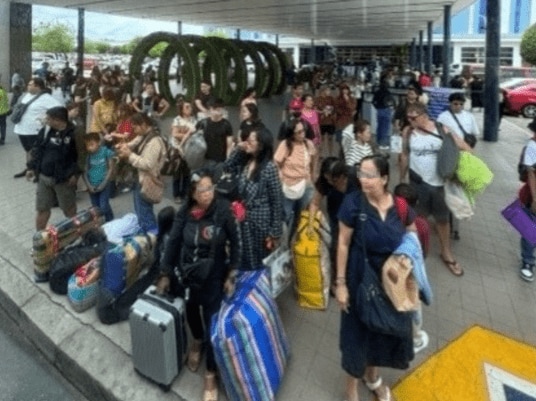 バス乗り場で待つ多くの利用者(クラーク国際空港)
