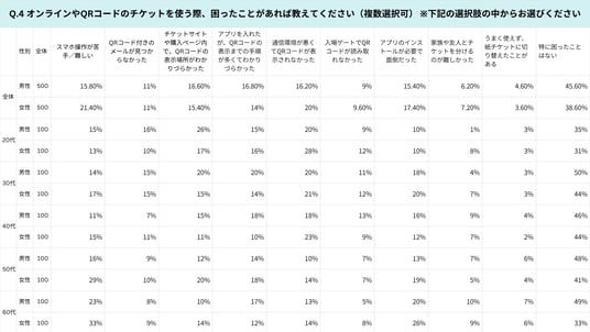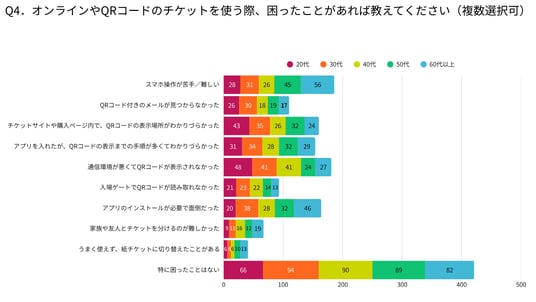 Q4.オンラインやQRコードのチケットを使う際、困ったことがあれば教えてください(複数選択可)