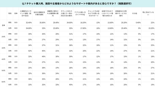 Q7.チケット購入時、施設や主催者からどのようなサポートや案内があると安心ですか?(複数選択可)