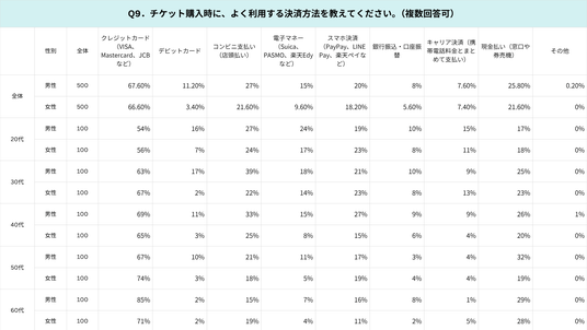 Q9.チケット購入時に、よく利用する決済方法を教えてください。(複数回答可)