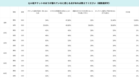 Q6.紙チケットのほうが優れていると感じる点があれば教えてください(複数選択可)