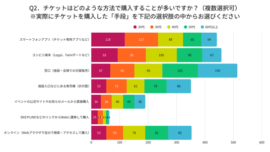 50代以上では、窓口や電話予約など対面型の購入方法を選ぶ割合が比較的高く、安心感やサポートを重視する傾向が強いと考えられます。
