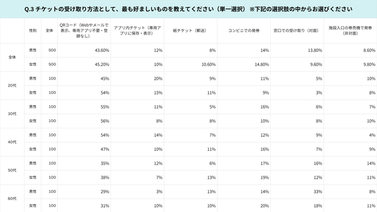 Q3.チケットの受け取り方法として、最も好ましいものを教えてください(単一選択)