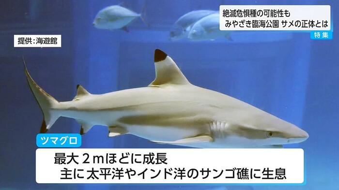 北谷さんが雰囲気が似ていると指摘するのは、メジロザメの一種である「ツマグロ」だ。「ツマグロ」は最大で2メートルほどに成長し、主に太平洋やインド洋のサンゴ礁に生息するという。本来の生息域はかなり南の海域と言われているので、宮崎で見られたとしたらかなり珍しいことだと言う。