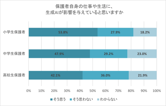 保護者自身の仕事や生活に、生成AIが影響を与えていると思いますか。