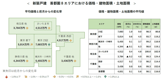 首都圏全体の平均価格は前月比、前年同月比ともに上昇した。