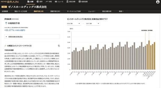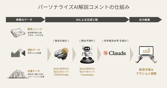 『xenoBrain』は、経済ニュースや企業開示資料、統計データなど、膨大な情報を独自のAIで解析し、企業業績や素材価格、業界需要など様々な経済情報を予測するプラットフォームです。