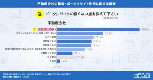 理由として最も多かったのは「広告費が高い」(48.1%)で、次いで「オプションを入れないと反響が取りづらい」(26.9%)が続き、いずれもコスト面への不満が中心となっています。