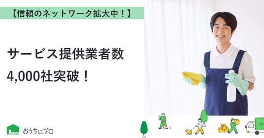 株式会社ゼロアクセル(本社:東京都千代田区、代表取締役:大福裕貴)が運営するハウスクリーニングの予約サイト「おうちにプロ」に登録するサービス提供業者数が4,000社を突破しました!