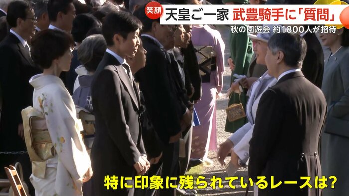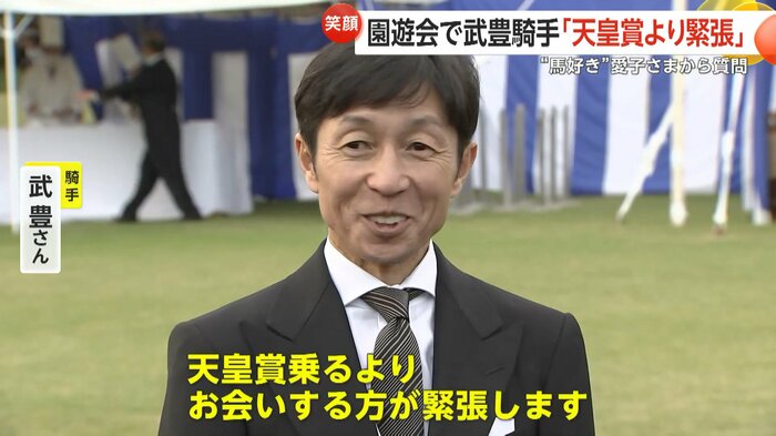 園遊会を終えた武豊さんは、「天皇賞乗るより、お会いする方が緊張します。きょうは頑張ろうと、もっともっと頑張ろうという気になりました」と話していた。