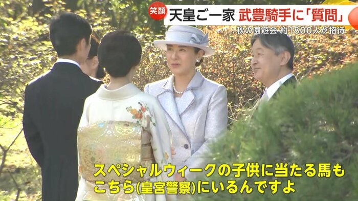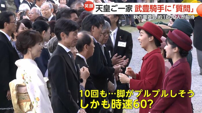 騎手の武豊さんと元歌手・俳優の佐野量子さん夫妻らに、雅子さまや愛子さまが声をかけられた。