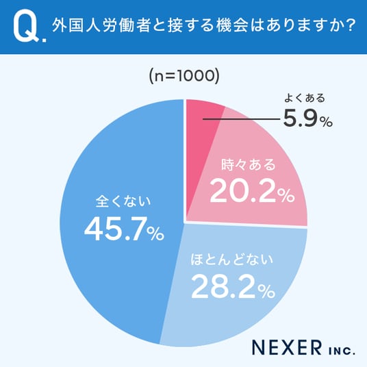 続いて、外国人労働者と接する機会があるか聞いてみました。