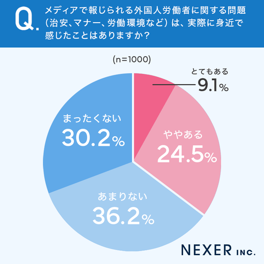 最後に、メディアで報じられる外国人労働者に関する問題を身近に感じたことがあるか聞いてみました。