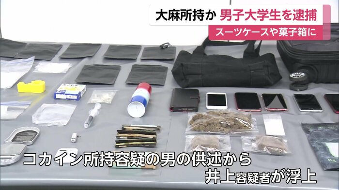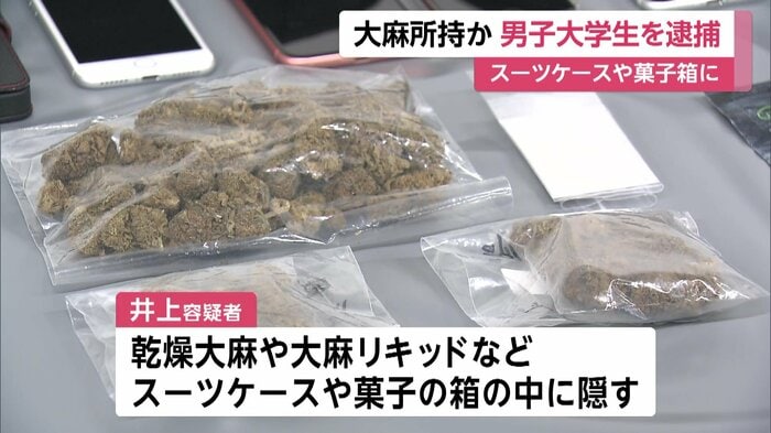 井上容疑者は、乾燥大麻や大麻リキッドなどを自宅のスーツケースやお菓子の箱の中に隠していたという。