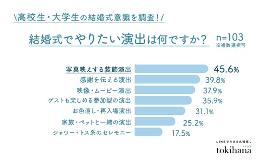 トキハナでは、こうした“披露されることへの抵抗感”から結婚式を諦めてしまう人々に向けて、複数のブライダルメディアと共同で「披露しない」新しい結婚式の選択肢である「令和型ウェディングパーティ」を推進しています(https://prtimes.jp/main/html/rd/p/000000143.000027297.html)。