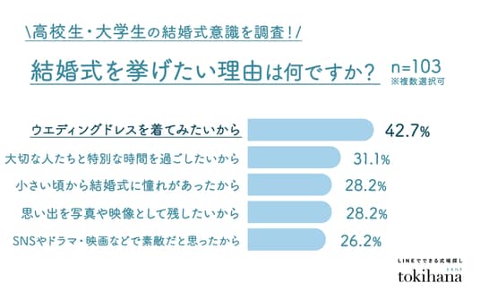 一方で、「結婚式を挙げたくない」理由のトップは「人前に立つのが恥ずかしい・苦手だから」であり、学生世代においても“主役になること”への抵抗感が根強いことが明らかになりました。
