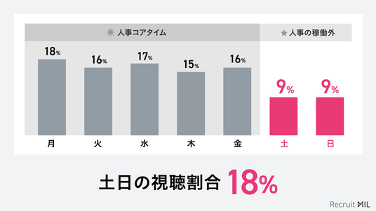 - 全体10,452件のうち、平日10~18時(人事コアタイム)の視聴は4,881件(47%)。