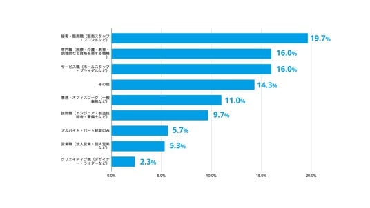 前職は「接客・販売職」が最多 専門職やサービス職も続く