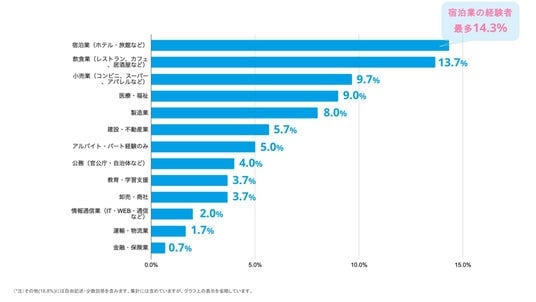 最初の就職先は宿泊・飲食・小売が上位 接客業出身者が多い傾向