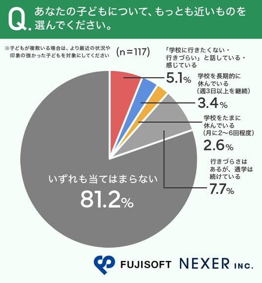 その詳しい内訳は、「行きづらさはあるが、通学は続けている」が7.7%、「学校に行きたくない・行きづらいと話している・感じている」が5.1%という結果になりました。